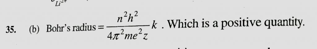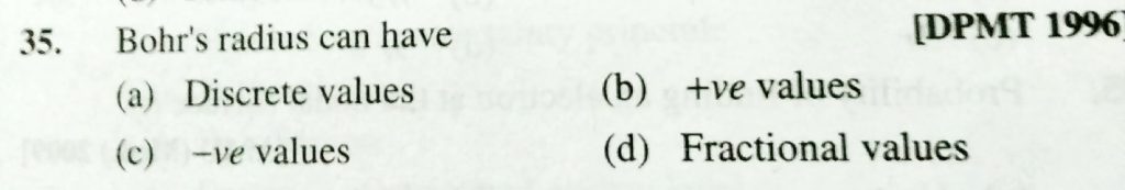 Bohr’s radius can have (a) Discrete values (b) +ve values (c) -ve values (d) Fractional values Bohr's radius can have (a) Discrete values (b) +ve values (c) -ve values (d) Fractional values November 27, 2020 Category: Uncategorised (JEE Advanced Physics by BM Sharma + GMP Solutions) , Facebook Messenger WhatsApp Share this:TwitterFacebook Related
