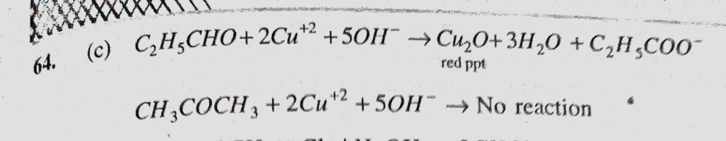 C2H5CHO and (CH3)2CO can be distinguished by testing with (a) Phenyl hydrazine (b) Hydroxylamine (c) Fehling solution (d) Sodium bisulphite C2H5CHO and (CH3)2CO can be distinguished by testing with (a) Phenyl hydrazine (b) Hydroxylamine (c) Fehling solution (d) Sodium bisulphite February 11, 2021 Category: Uncategorised (JEE Advanced Physics by BM Sharma + GMP Solutions) , Facebook Messenger WhatsApp Share this:TwitterFacebook Related