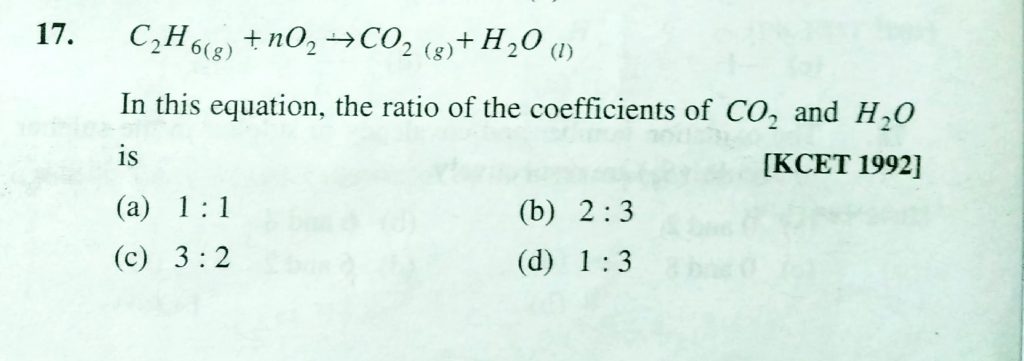 C2H6(g) +nO2 gives CO2 (g) +H2O (i) In this equation , the ratio of the coefficients of CO2 and H20 is C2H6(g) +nO2 gives CO2 (g) +H2O (i) In this equation the ratio of the coefficients of CO2 and H20 is November 24, 2020 Category: Uncategorised (JEE Advanced Physics by BM Sharma + GMP Solutions) , Facebook Messenger WhatsApp Share this:TwitterFacebook Related