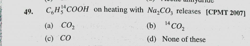 C6H5 14 COOH on heating with Na2CO3 releases (a) CO2 (b) 12CO2 (c) CO (d) None of these C6H5 14 COOH on heating with Na2CO3 releases (a) CO2 (b) 12CO2 (c) CO (d) None of these February 13, 2021 Category: Uncategorised (JEE Advanced Physics by BM Sharma + GMP Solutions) , Facebook Messenger WhatsApp Share this:TwitterFacebook Related