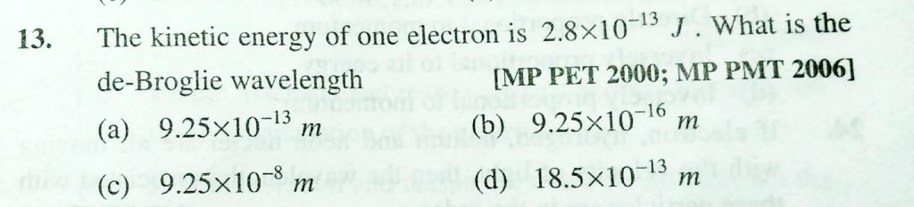 The kinetic energy of one electron is 2.8 x 10^-13 J. what is the de – Broglie wavelength The kinetic energy of one electron is 2.8 x 10^-13 J. what is the de - Broglie wavelength November 27, 2020 Category: Uncategorised (JEE Advanced Physics by BM Sharma + GMP Solutions) , Facebook Messenger WhatsApp Share this:TwitterFacebook Related