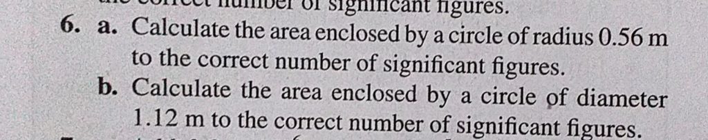 a. Calculate the area enclosed by a circle of radius 0.56 m to the correct number of significant figures. b. Calculate the area enclosed by a circle of diameter 1.12 m to the correct number of significant figures. add the following a. 953 and 0.324 b. 953 With due regard to significant figures September 14, 2020 Category: Uncategorised (JEE Advanced Physics by BM Sharma + GMP Solutions) , Facebook Messenger WhatsApp Share this:TwitterFacebook Related