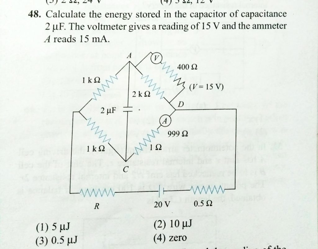 Calculate the energy stored in the capacitor of capacitance 2 muF . The voltmeter gives a reading of 15 V and the ammeter A reads 15 mA. Calculate the energy stored in the capacitor of capacitance 2 muF . The voltmeter gives a reading of 15 V and the ammeter A reads 15 mA. November 13, 2020 Category: Uncategorised (JEE Advanced Physics by BM Sharma + GMP Solutions) , Facebook Messenger WhatsApp Share this:TwitterFacebook Related