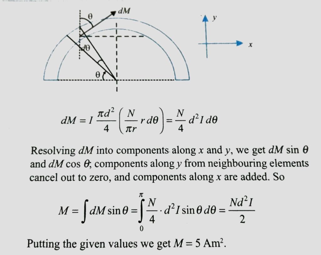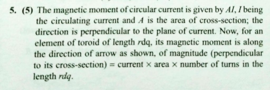 Calculate the magnetic moment ( in Am^2 ) of a thin wire with a current I = 8 A, would tightly on a half a tore ( see figure ) . The diameter of the cross section of tore is equal to d = 5 cm , and the number of turns is N = 500. and the number of turns is N = 500. Calculate the magnetic moment ( in Am^2 ) of a thin wire with a current I = 8 A would tightly on a half a tore ( see figure ) . The diameter of the cross section of tore is equal to d = 5 cm October 16, 2020 Category: Uncategorised (JEE Advanced Physics by BM Sharma + GMP Solutions) , Facebook Messenger WhatsApp Share this:TwitterFacebook Related