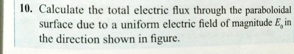 Calculate the total electric flux through the paraboloidal surface due to a uniform electric field of magnitude E0 in the direction shown in figure. Calculate the total electric flux through the paraboloidal surface due to a uniform electric field of magnitude E0 in the direction shown in figure. October 30, 2020 Category: Uncategorised (JEE Advanced Physics by BM Sharma + GMP Solutions) , Facebook Messenger WhatsApp Share this:TwitterFacebook Related