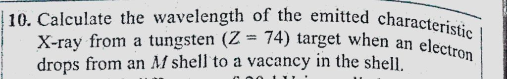Calculate the wavelength of the emitted characteristic X-ray from a tungsten (Z= 74) target when an electron drops from an M shell to a vacancy in the shell. Calculate the wavelength of the emitted characteristic X-ray from a tungsten (Z= 74) target when an electron drops from an M shell to a vacancy in the shell. October 15, 2020 Category: Uncategorised (JEE Advanced Physics by BM Sharma + GMP Solutions) , Facebook Messenger WhatsApp Share this:TwitterFacebook Related