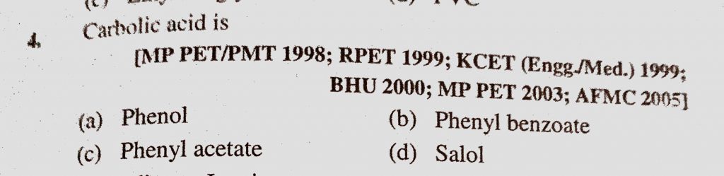Carbolic acid is (a) Phenol (b) Phenyl benzoate (c) Phenyl acetate (d) Salol Carbolic acid is (a) Phenol (b) Phenyl benzoate (c) Phenyl acetate (d) Salol February 9, 2021 Category: Uncategorised (JEE Advanced Physics by BM Sharma + GMP Solutions) , Facebook Messenger WhatsApp Share this:TwitterFacebook Related