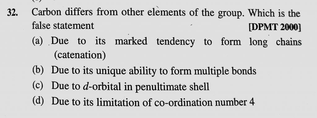 Carbon differs from other elements of the group. Which is the false statement (a) Due to its marked tendency to form long chains (catenation) Carbon differs from other elements of the group. Which is the false statement (a) Due to its marked tendency to form long chains (catenation) November 27, 2020 Category: Uncategorised (JEE Advanced Physics by BM Sharma + GMP Solutions) , Facebook Messenger WhatsApp Share this:TwitterFacebook Related