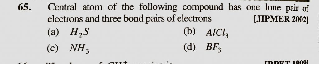 Central atom of the following compound has lone pair of electrons and three bond pairs of electrons Central atom of the following compound has lone pair of electrons and three bond pairs of electrons December 7, 2020 Category: Uncategorised (JEE Advanced Physics by BM Sharma + GMP Solutions) , Facebook Messenger WhatsApp Share this:TwitterFacebook Related
