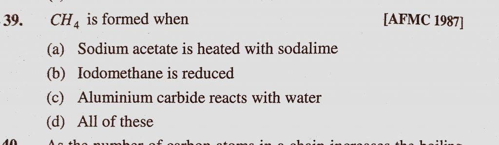 CH4 is formed when (a) Sodium acetate is heated with sodalime (b) Iodomethane is reduced CH4 is formed when (a) Sodium acetate is heated with sodalime (b) Iodomethane is reduced December 12, 2020 Category: Uncategorised (JEE Advanced Physics by BM Sharma + GMP Solutions) , Facebook Messenger WhatsApp Share this:TwitterFacebook Related