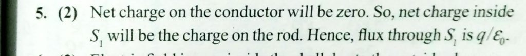 Charge on an originally uncharged conductor is separated by holding a positively charged rod very closely nearby, as shown in figure. Assume that the induced negative charge on the conductor is equal to the positive charge q on the rod. Then the flux through surface S1 is