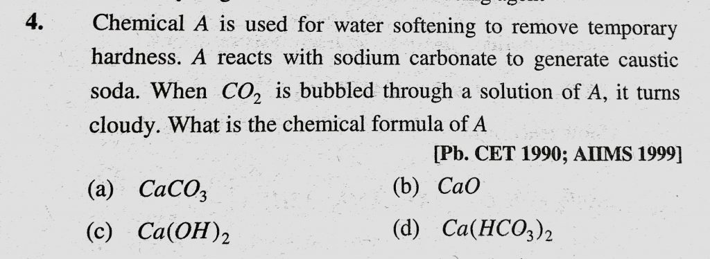 Chemical A is used for water softening to remove temporary hardness. A reacts with sodium carbonate to generate caustic soda. When CO2 is bubbled through a solution of A, Chemical A is used for water softening to remove temporary hardness. A reacts with sodium carbonate to generate caustic soda. When CO2 is bubbled through a solution of A November 12, 2020 Category: Uncategorised (JEE Advanced Physics by BM Sharma + GMP Solutions) , Facebook Messenger WhatsApp Share this:TwitterFacebook Related
