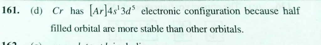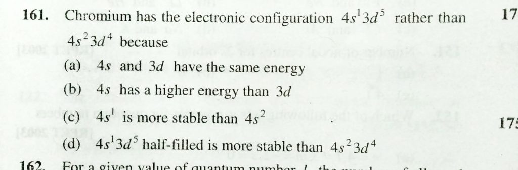 Chromium has teh electronic configuration 4s^1 3d^5 rather than 4s^2 3d^4 because Chromium has teh electronic configuration 4s^1 3d^5 rather than 4s^2 3d^4 because November 29, 2020 Category: Uncategorised (JEE Advanced Physics by BM Sharma + GMP Solutions) , Facebook Messenger WhatsApp Share this:TwitterFacebook Related