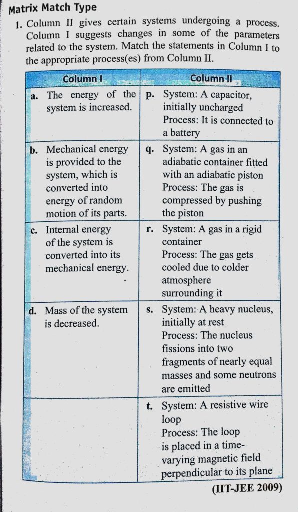 Column 2 gives certain systems undergoing a process. Column 1 suggests changes in some of the parameters related to the system. Match the statements in Column 1 to the appropriate Column 2 gives certain systems undergoing a process. Column 1 suggests changes in some of the parameters related to the system. Match the statements in Column 1 to the appropriate October 20, 2020 Category: Uncategorised (JEE Advanced Physics by BM Sharma + GMP Solutions) , Facebook Messenger WhatsApp Share this:TwitterFacebook Related