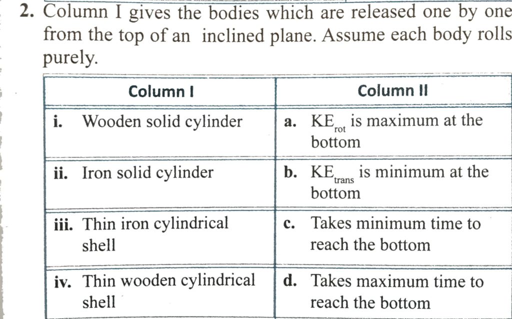Column I gives the bodies which are released one by one from the top of an inclined plane. Assume each body rolls purely. Column I gives the bodies which are released one by one from the top of an inclined plane. Assume each body rolls purely. September 30, 2020 Category: Uncategorised (JEE Advanced Physics by BM Sharma + GMP Solutions) , Facebook Messenger WhatsApp Share this:TwitterFacebook Related
