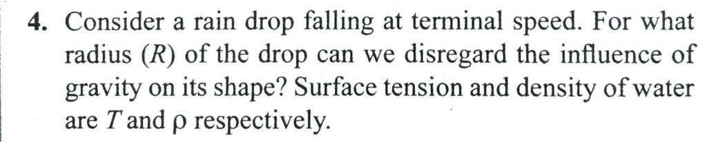 Consider a rain drop falling at terminal speed. For what radius (R) of the drop can we disregard the influence of gravity on its shape? Surface tension and density of water are T and ρ respectively. Consider a rain drop falling at terminal speed. For what radius (R) of the drop can we disregard the influence of gravity on its shape? Surface tension and density of water are T and ρ respectively. October 11, 2020 Category: Uncategorised (JEE Advanced Physics by BM Sharma + GMP Solutions) , Facebook Messenger WhatsApp Share this:TwitterFacebook Related
