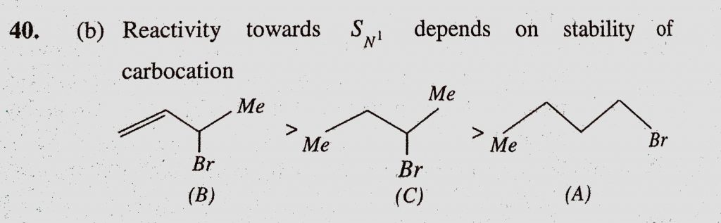 Consider the following bromides The correct order of S N^1 reactivity is (a) A > B > C (b) B > C > A Consider the following bromides The correct order of S N^1 reactivity is (a) A > B > C (b) B > C > A December 9, 2020 Category: Uncategorised (JEE Advanced Physics by BM Sharma + GMP Solutions) , Facebook Messenger WhatsApp Share this:TwitterFacebook Related