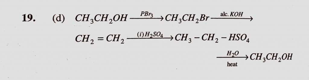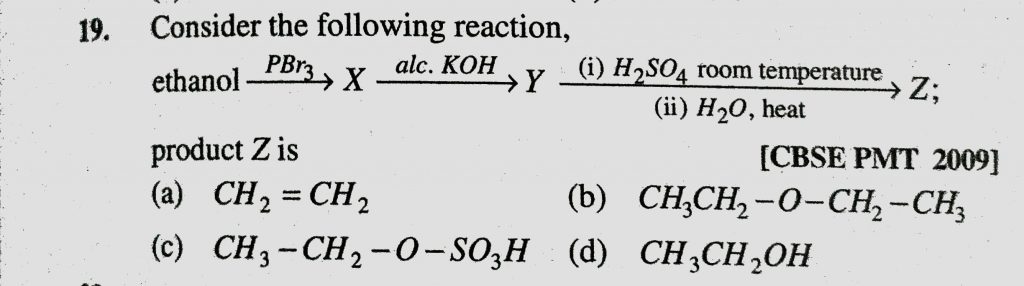 Consider the following reaction ethanol gives X gives Y gives Z; product Z is (a) CH2 = CH2 (b) CH3CH2 – O – CH2 – CH3 (c) CH3 – CH2 – O – SO3H (d) CH3CH2OH Consider the following reaction ethanol gives X gives Y gives Z; product Z is (a) CH2 = CH2 (b) CH3CH2 - O - CH2 - CH3 (c) CH3 - CH2 - O - SO3H (d) CH3CH2OH February 10, 2021 Category: Uncategorised (JEE Advanced Physics by BM Sharma + GMP Solutions) , Facebook Messenger WhatsApp Share this:TwitterFacebook Related