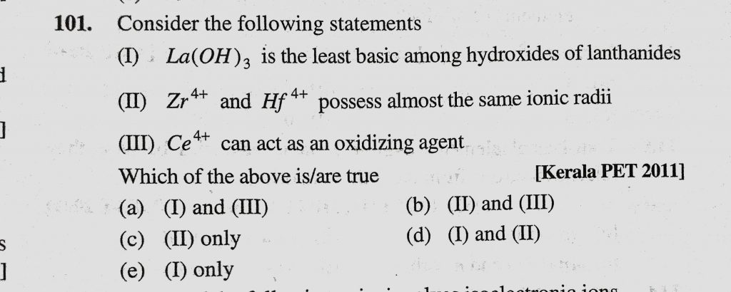 Consider the following statements (I) La(OH)3 is the least basic among hydroxides of lanthanides (II) Zr 4+ and Hf 4+ possess almost the same ionic radii Consider the following statements (I) La(OH)3 is the least basic among hydroxides of lanthanides (II) Zr 4+ and Hf 4+ possess almost the same ionic radii November 30, 2020 Category: Uncategorised (JEE Advanced Physics by BM Sharma + GMP Solutions) , Facebook Messenger WhatsApp Share this:TwitterFacebook Related