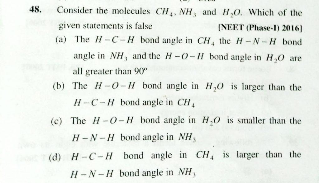 Consider the molecules CH4 , NH3 and H2O . which of the given statement is false Consider the molecules CH4 NH3 and H2O . which of the given statement is false December 1, 2020 Category: Uncategorised (JEE Advanced Physics by BM Sharma + GMP Solutions) , Facebook Messenger WhatsApp Share this:TwitterFacebook Related