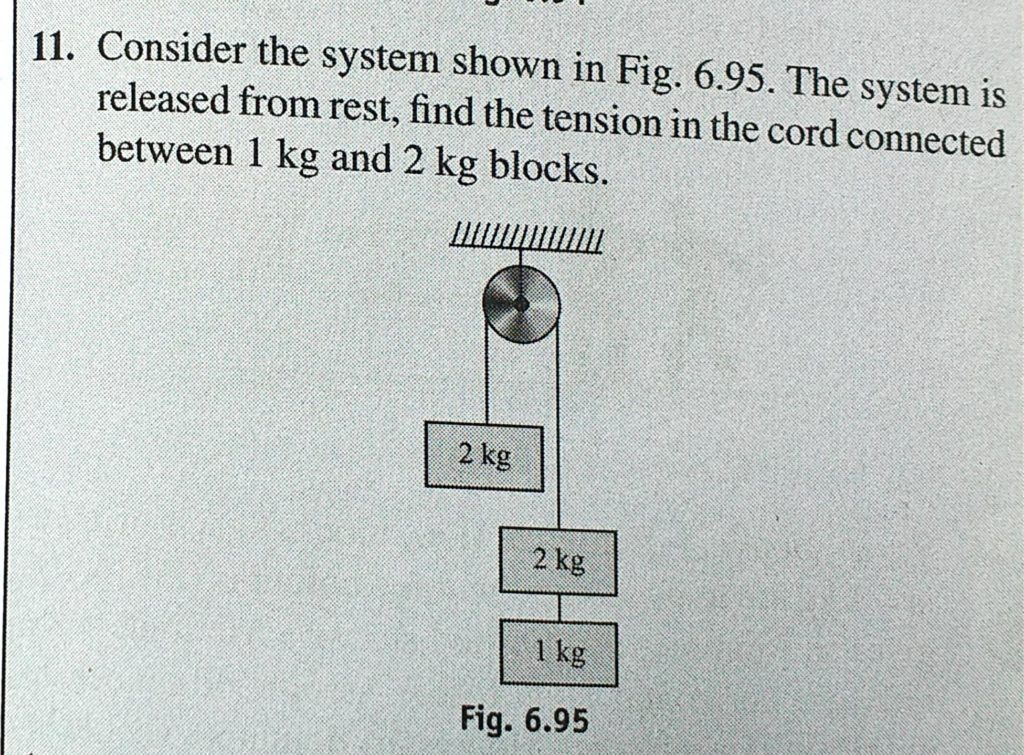 Consider the system shown in Fig. 6.95. The system is released from rest, find the tension in the cord connected between 1 kg and 2 kg blocks. Consider the system shown in Fig. 6.95. The system is released from rest find the tension in the cord connected between 1 kg and 2 kg blocks. September 25, 2020 Category: Uncategorised (JEE Advanced Physics by BM Sharma + GMP Solutions) , Facebook Messenger WhatsApp Share this:TwitterFacebook Related