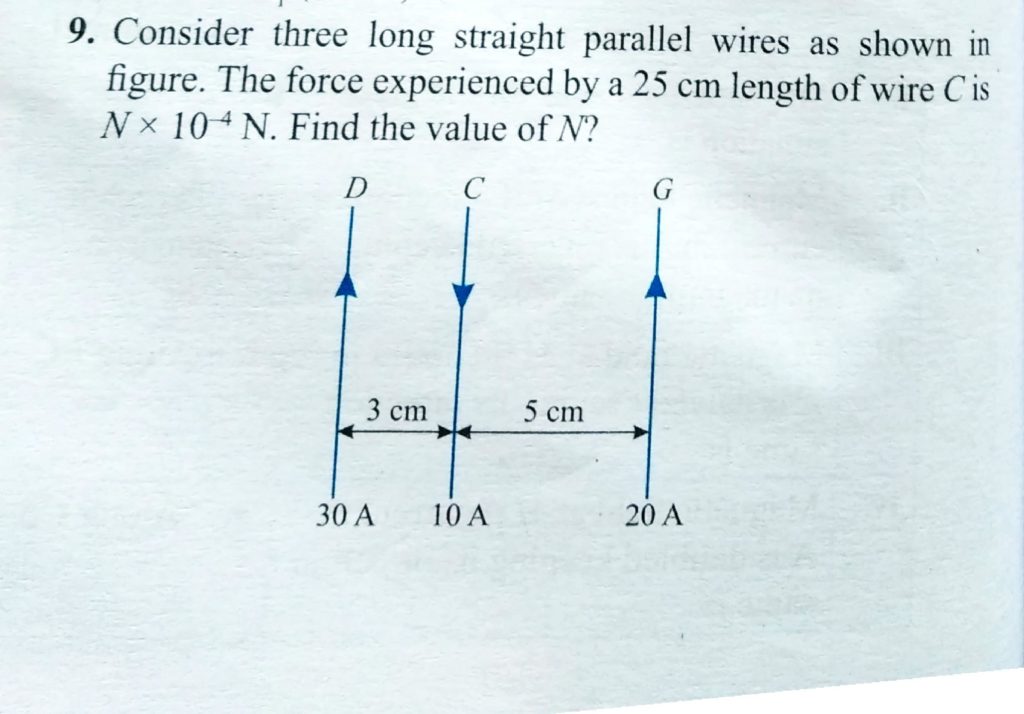 Consider three long straignht parallel wires as shown in figure. THe force the experienced by a 25 cm length of wire C is N X 10^-4 N. Find the value of N? Consider three long straignht parallel wires as shown in figure. THe force the experienced by a 25 cm length of wire C is N X 10^-4 N. Find the value of N? October 17, 2020 Category: Uncategorised (JEE Advanced Physics by BM Sharma + GMP Solutions) , Facebook Messenger WhatsApp Share this:TwitterFacebook Related
