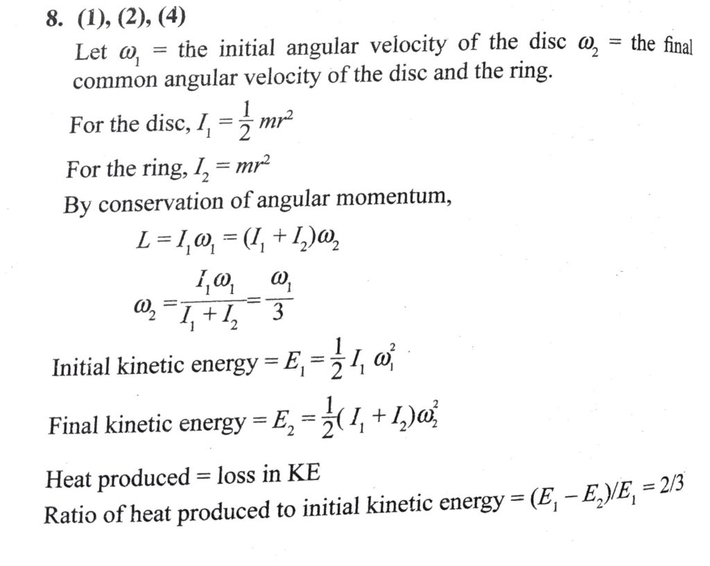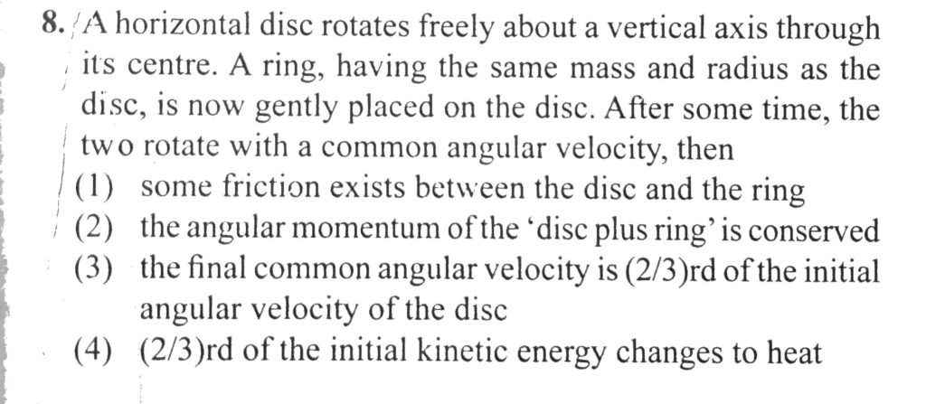 A horizontal disc rotates freely about a vertical axis through its central. A ring, having the same mass and radius as the disk is now gently placed on disc. After some time, the two rotates with a common angular velocity. A horizontal disc rotates freely about a vertical axis through its central. A ring having the same mass and radius as the disk is now gently placed on disc. After some time the two rotates with a common angular velocity. September 30, 2020 Category: Uncategorised (JEE Advanced Physics by BM Sharma + GMP Solutions) , Facebook Messenger WhatsApp Share this:TwitterFacebook Related