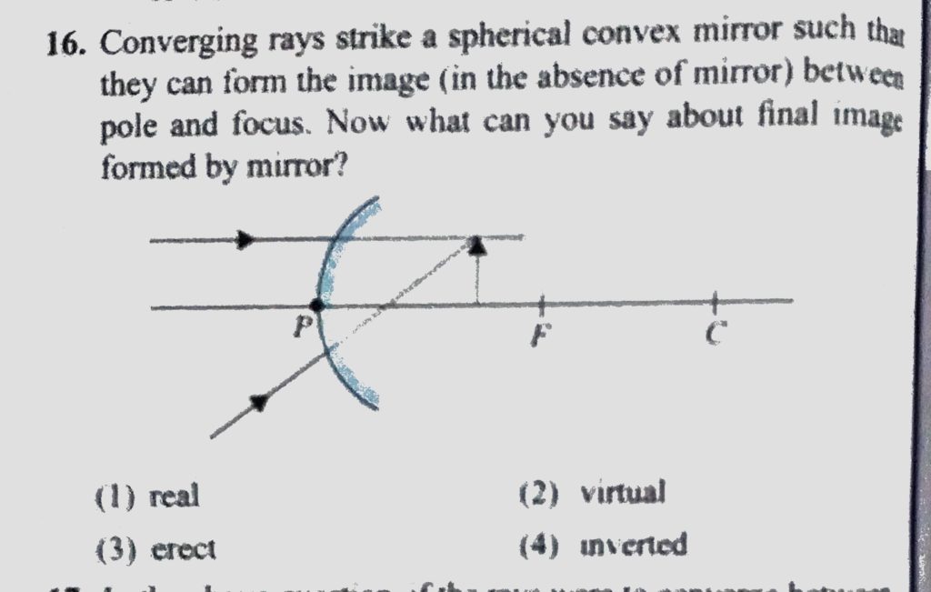 Converging rays strike a spherical convex mirror such that they can form the image ( in the absence of mirror) between pole and focus. Now what can you say about final image formed by mirror? Converging rays strike a spherical convex mirror such that they can form the image ( in the absence of mirror) between pole and focus. Now what can you say about final image formed by mirror? October 6, 2020 Category: Uncategorised (JEE Advanced Physics by BM Sharma + GMP Solutions) , Facebook Messenger WhatsApp Share this:TwitterFacebook Related