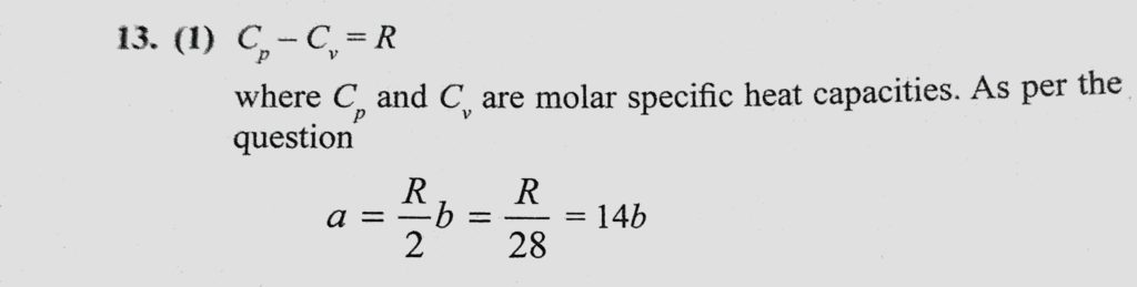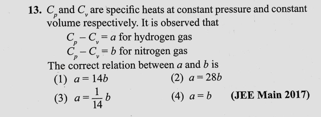 Cp and Cv are specific heats at constant pressure and constant volume respectively. It is observed that Cp – Cv = a for hydrogen gas Cp – Cv = b for nitrogen gas The correct relation Cp and Cv are specific heats at constant pressure and constant volume respectively. It is observed that Cp - Cv = a for hydrogen gas Cp - Cv = b for nitrogen gas The correct relation October 30, 2020 Category: Uncategorised (JEE Advanced Physics by BM Sharma + GMP Solutions) , Facebook Messenger WhatsApp Share this:TwitterFacebook Related