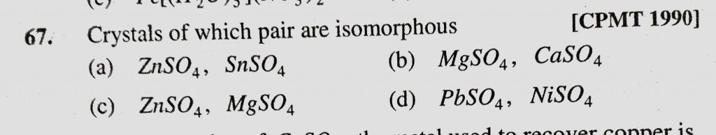 Crystals of which pair are isomorphous (a) ZnSO4 , SnSO4 (b) MgSO4, CaSO4 (c) ZnSO4, MgSO4 CaSO4 (c) ZnSO4 Crystals of which pair are isomorphous (a) ZnSO4 MgSO4 SnSO4 (b) MgSO4 December 1, 2020 Category: Uncategorised (JEE Advanced Physics by BM Sharma + GMP Solutions) , Facebook Messenger WhatsApp Share this:TwitterFacebook Related