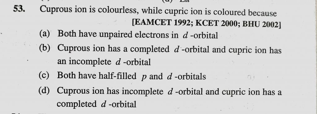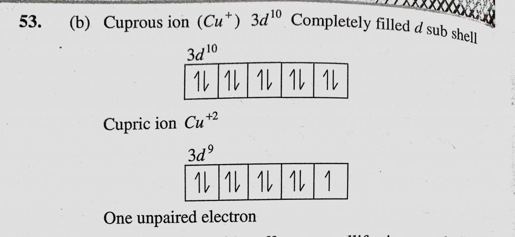 Cuprous ion is colourless, while cupric ion is coloured because (a) Both have unpaired electron in d-orbital Cuprous ion is colourless while cupric ion is coloured because (a) Both have unpaired electron in d-orbital November 29, 2020 Category: Uncategorised (JEE Advanced Physics by BM Sharma + GMP Solutions) , Facebook Messenger WhatsApp Share this:TwitterFacebook Related