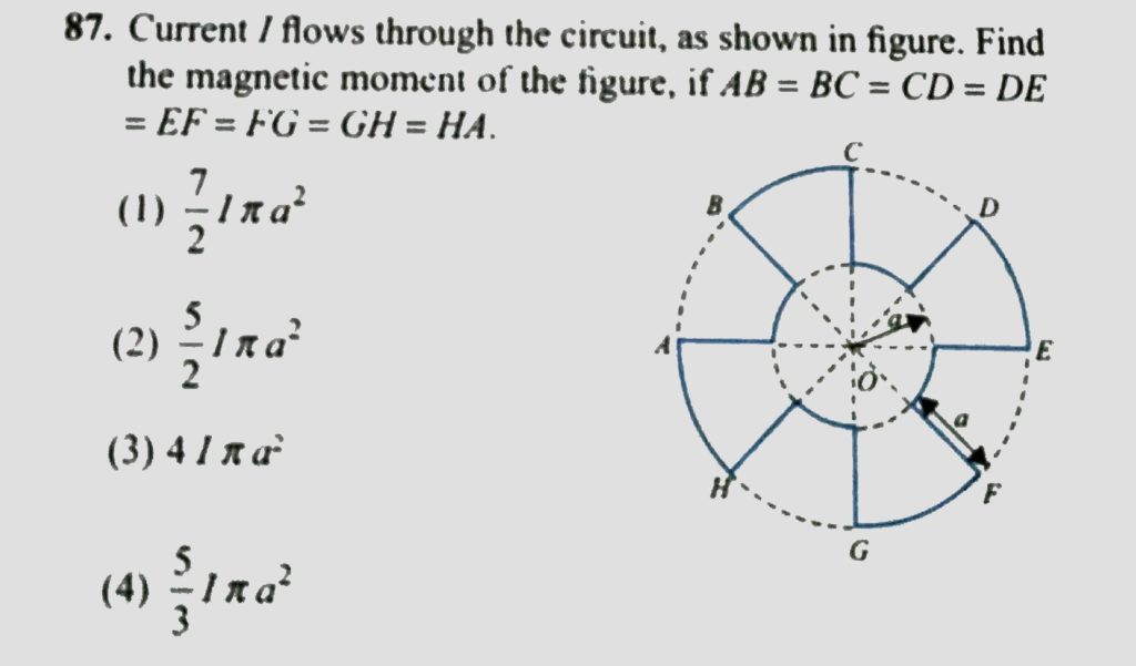 Current I flows through the circuit , as shown in figure . Find the magnnetic moment of the figure, if AB = BC = CD = DE = EF = FG = GH = HA. as shown in figure . Find the magnnetic moment of the figure Current I flows through the circuit if AB = BC = CD = DE = EF = FG = GH = HA. October 14, 2020 Category: Uncategorised (JEE Advanced Physics by BM Sharma + GMP Solutions) , Facebook Messenger WhatsApp Share this:TwitterFacebook Related