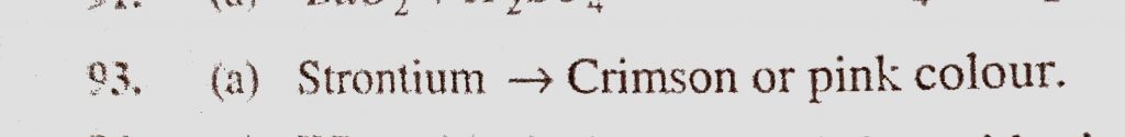 Deep pink colour is given to flame by the salts of (a) Strontium (b) Potassium (c) Zinc (d) Barium Deep pink colour is given to flame by the salts of (a) Strontium (b) Potassium (c) Zinc (d) Barium November 17, 2020 Category: Uncategorised (JEE Advanced Physics by BM Sharma + GMP Solutions) , Facebook Messenger WhatsApp Share this:TwitterFacebook Related