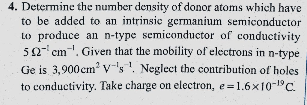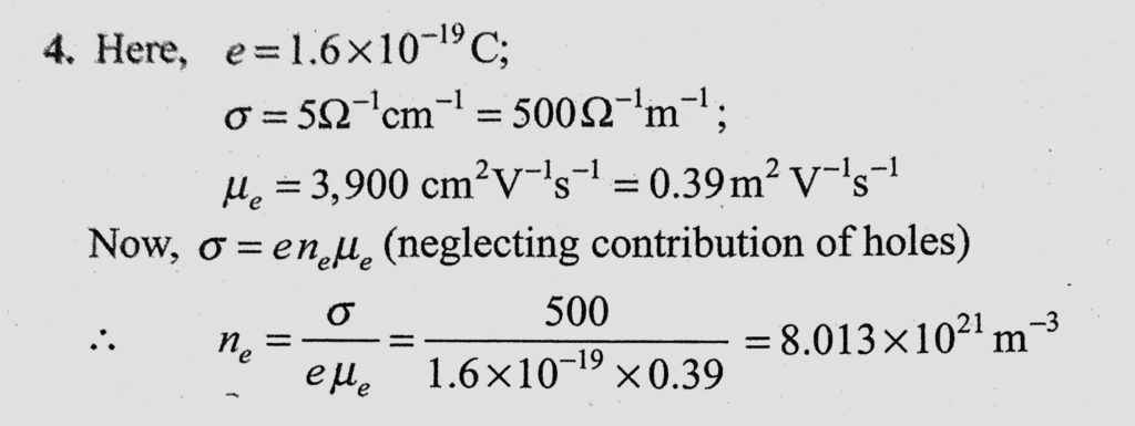 Determine the number density of donor atoms which have to be added to an intrinsic germanium semiconductor to produce an n-type semi-conductor of conductivity 5 ohm/cm Determine the number density of donor atoms which have to be added to an intrinsic germanium semiconductor to produce an n-type semi-conductor of conductivity 5 ohm/cm October 20, 2020 Category: Uncategorised (JEE Advanced Physics by BM Sharma + GMP Solutions) , Facebook Messenger WhatsApp Share this:TwitterFacebook Related
