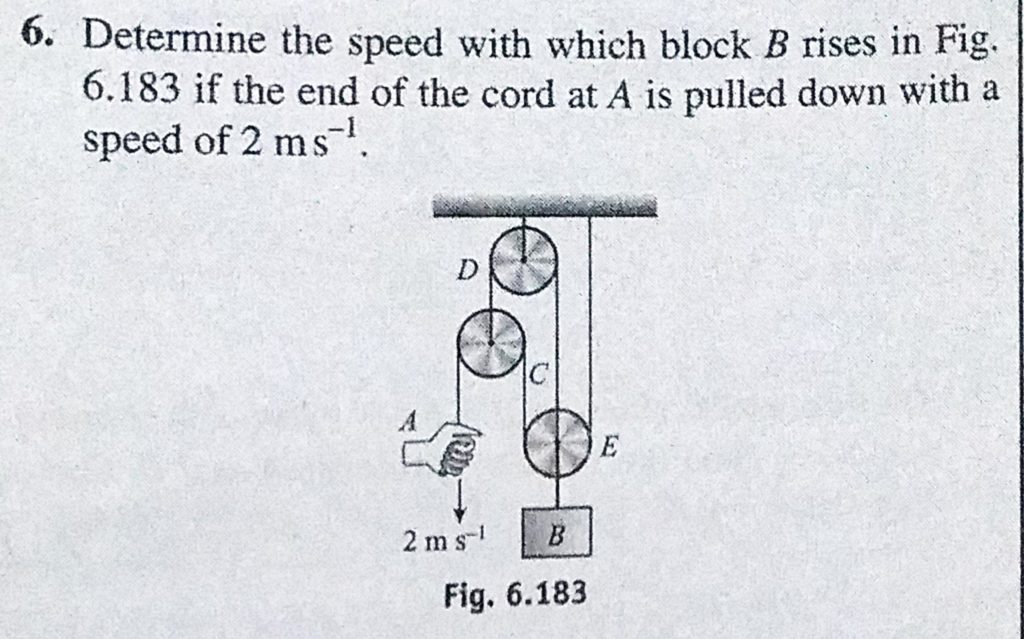 Determine the speed with which block B rises in Fig. 6.183 if the end of the cord at A is pulled down with a speed of 2 m/s. Determine the speed with which block B rises in Fig. 6.183 if the end of the cord at A is pulled down with a speed of 2 m/s. September 28, 2020 Category: Uncategorised (JEE Advanced Physics by BM Sharma + GMP Solutions) , Facebook Messenger WhatsApp Share this:TwitterFacebook Related