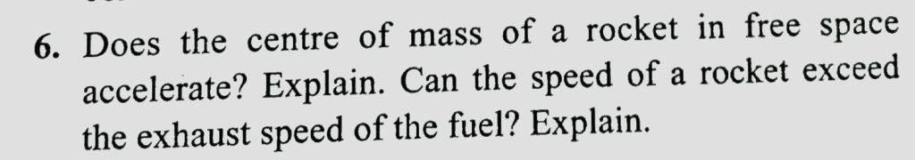 Does the centre of mass of a rocket in free space accelerate ? Explain . Can the speed of a rocket exceed the exhaust speed of the fuel ? Explain. Does the centre of mass of a rocket in free space accelerate ? Explain . Can the speed of a rocket exceed the exhaust speed of the fuel ? Explain. September 20, 2020 Category: Uncategorised (JEE Advanced Physics by BM Sharma + GMP Solutions) , Facebook Messenger WhatsApp Share this:TwitterFacebook Related
