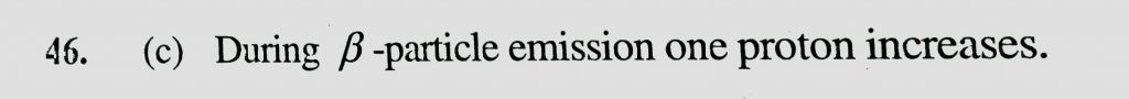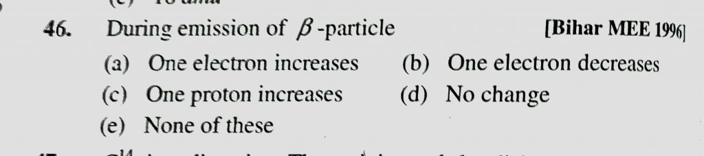 During emission of bita – particles (a) On electron increases (b) One electron decreases (c) One proton increases (d) No charge (e) none of these During emission of bita - particles (a) On electron increases (b) One electron decreases (c) One proton increases (d) No charge (e) none of these February 14, 2021 Category: Uncategorised (JEE Advanced Physics by BM Sharma + GMP Solutions) , Facebook Messenger WhatsApp Share this:TwitterFacebook Related
