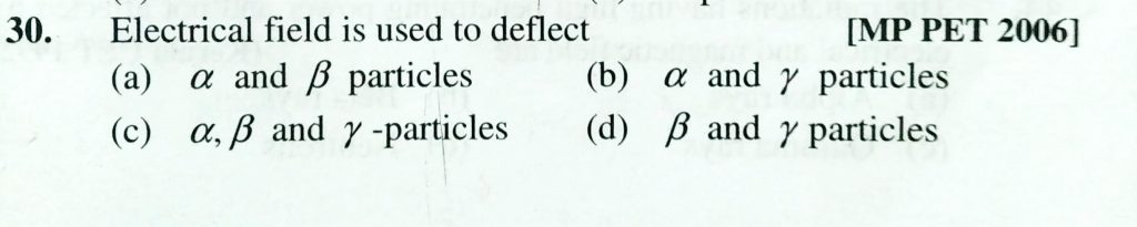 Electrical field is used to deflect (a) Alpha and bita particles (b) alpha and gamma particles (c) alpha, bita and particles (d) bita and gamma particles bita and particles (d) bita and gamma particles Electrical field is used to deflect (a) Alpha and bita particles (b) alpha and gamma particles (c) alpha February 14, 2021 Category: Uncategorised (JEE Advanced Physics by BM Sharma + GMP Solutions) , Facebook Messenger WhatsApp Share this:TwitterFacebook Related