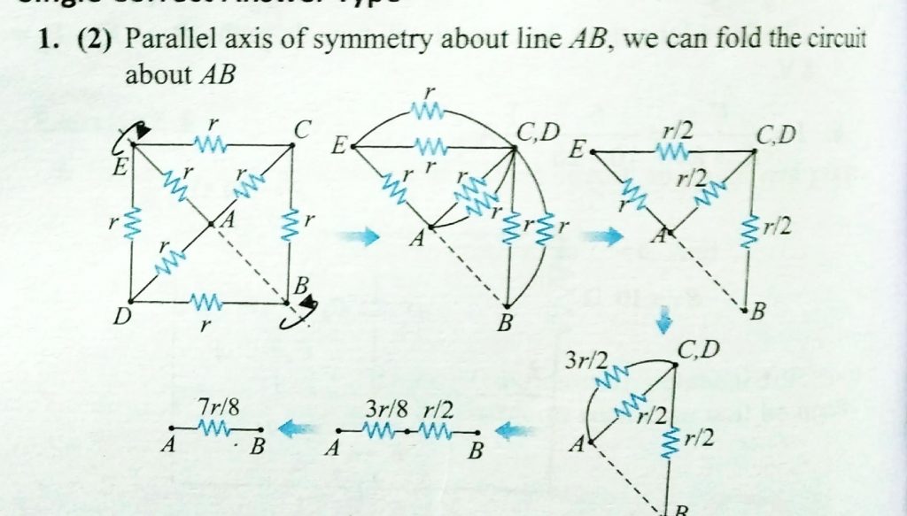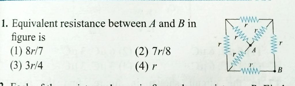 Equivalent resistance between A and B in (1) 8r/7 (2) 7r/8 (3) 3r/4 (4) r Equivalent resistance between A and B in (1) 8r/7 (2) 7r/8 (3) 3r/4 (4) r November 11, 2020 Category: Uncategorised (JEE Advanced Physics by BM Sharma + GMP Solutions) , Facebook Messenger WhatsApp Share this:TwitterFacebook Related