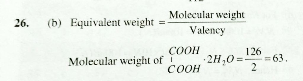 Equivalent weight of crystalline Oxalic acid is (a) 30 (b) 63 (c) 53 (d) 45 Equivalent weight of crystalline Oxalic acid is (a) 30 (b) 63 (c) 53 (d) 45 November 22, 2020 Category: Uncategorised (JEE Advanced Physics by BM Sharma + GMP Solutions) , Facebook Messenger WhatsApp Share this:TwitterFacebook Related