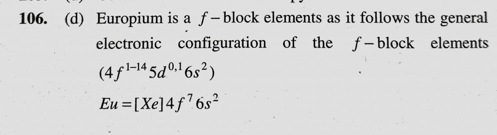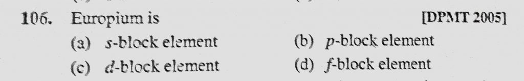 Europium is (a) s-block element (b) p-block element (c) d-block element (d) f-block element Europium is (a) s-block element (b) p-block element (c) d-block element (d) f-block element November 30, 2020 Category: Uncategorised (JEE Advanced Physics by BM Sharma + GMP Solutions) , Facebook Messenger WhatsApp Share this:TwitterFacebook Related