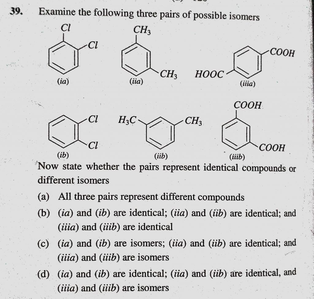 Examine the following three pairs of possible isomers Now state whether the pairs represent identical compounds or different isomers Examine the following three pairs of possible isomers Now state whether the pairs represent identical compounds or different isomers December 11, 2020 Category: Uncategorised (JEE Advanced Physics by BM Sharma + GMP Solutions) , Facebook Messenger WhatsApp Share this:TwitterFacebook Related