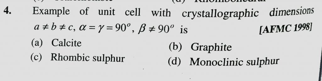 Example of unit cell with crystallographic dimensions a is not eaual to b is not equal to c , alpha = gama = 90 degree, Beta is not equal to 90 degree is alpha = gama = 90 degree Beta is not equal to 90 degree is Example of unit cell with crystallographic dimensions a is not eaual to b is not equal to c December 16, 2020 Category: Uncategorised (JEE Advanced Physics by BM Sharma + GMP Solutions) , Facebook Messenger WhatsApp Share this:TwitterFacebook Related
