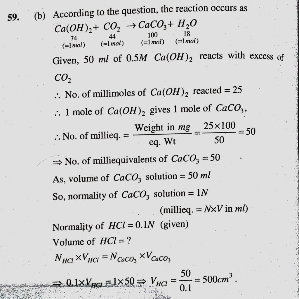 Excess of carbon dioxide is passed through 50 ml of 0.5 M calcium hydroxide solution. After the completion of the reaction, the solution was evaporated to dryness. The solid calcium Excess of carbon dioxide is passed through 50 ml of 0.5 M calcium hydroxide solution. After the completion of the reaction the solution was evaporated to dryness. The solid calcium December 7, 2020 Category: Uncategorised (JEE Advanced Physics by BM Sharma + GMP Solutions) , Facebook Messenger WhatsApp Share this:TwitterFacebook Related
