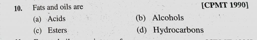 Fats and oils are (a) Acids (b) Alcohols (c) Esters (d) Hydrocarbons Fats and oils are (a) Acids (b) Alcohols (c) Esters (d) Hydrocarbons February 12, 2021 Category: Uncategorised (JEE Advanced Physics by BM Sharma + GMP Solutions) , Facebook Messenger WhatsApp Share this:TwitterFacebook Related