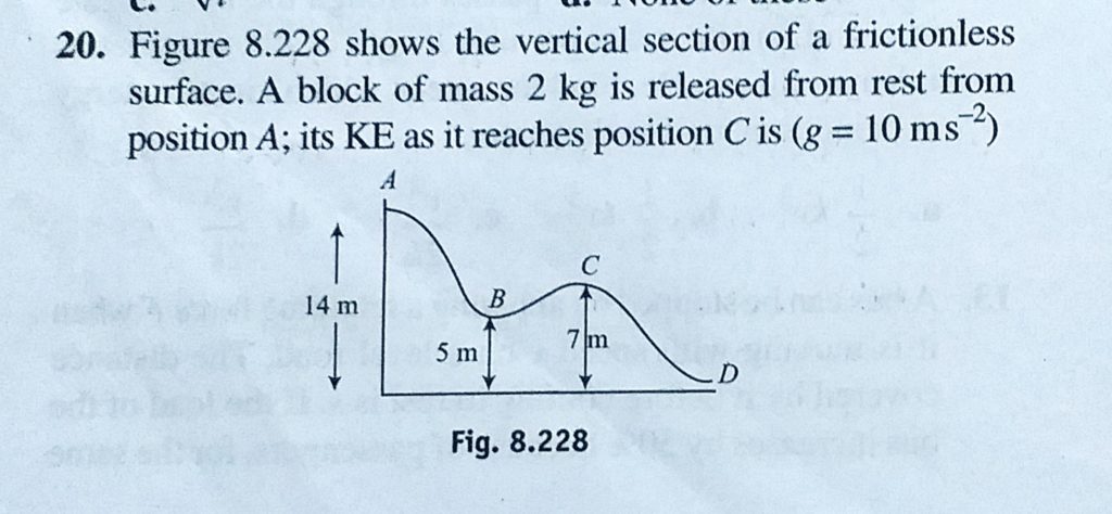 Figure 8.228 shows the vertical section of a frictionless surface. A block of mass 2 kg is released from rest from position A; its KE as its reaches position C is Figure 8.228 shows the vertical section of a frictionless surface. A block of mass 2 kg is released from rest from position A; its KE as its reaches position C is October 3, 2020 Category: Uncategorised (JEE Advanced Physics by BM Sharma + GMP Solutions) , Facebook Messenger WhatsApp Share this:TwitterFacebook Related