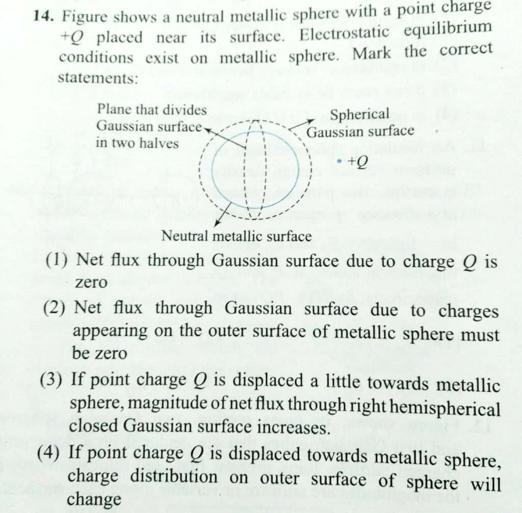 Figure shows a netural metallic sphere with a pointcharge +Q placed near its surface. Electrostatic equilibrium conditions exists on metallic sphere . Mark the correct statements : Figure shows a netural metallic sphere with a pointcharge +Q placed near its surface. Electrostatic equilibrium conditions exists on metallic sphere . Mark the correct statements : November 1, 2020 Category: Uncategorised (JEE Advanced Physics by BM Sharma + GMP Solutions) , Facebook Messenger WhatsApp Share this:TwitterFacebook Related