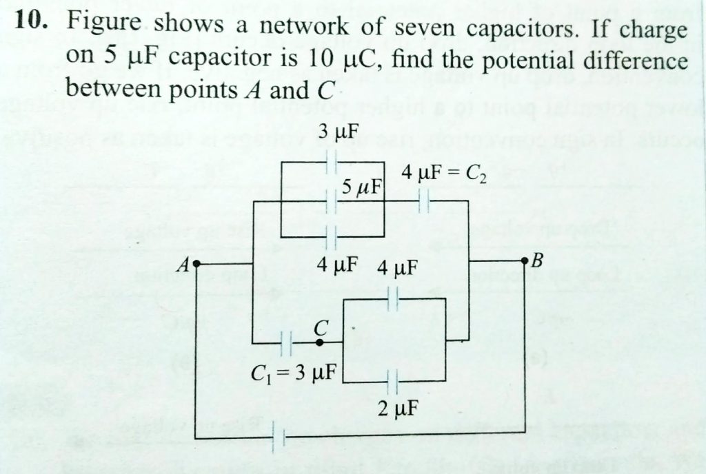 Figure shows a network of seven capacitors . If charge on 5 muF capacitor is 10 muC , find the potential difference between points A and C Figure shows a network of seven capacitors . If charge on 5 muF capacitor is 10 muC find the potential difference between points A and C November 7, 2020 Category: Uncategorised (JEE Advanced Physics by BM Sharma + GMP Solutions) , Facebook Messenger WhatsApp Share this:TwitterFacebook Related