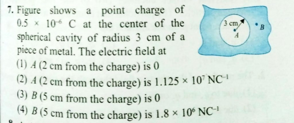 Figure shows a point charge of 0.5 x 10^-6 C att the center of the spherical cavity of the radius 3 cm of a piece metal. The electric field at Figure shows a point charge of 0.5 x 10^-6 C att the center of the spherical cavity of the radius 3 cm of a piece metal. The electric field at November 1, 2020 Category: Uncategorised (JEE Advanced Physics by BM Sharma + GMP Solutions) , Facebook Messenger WhatsApp Share this:TwitterFacebook Related