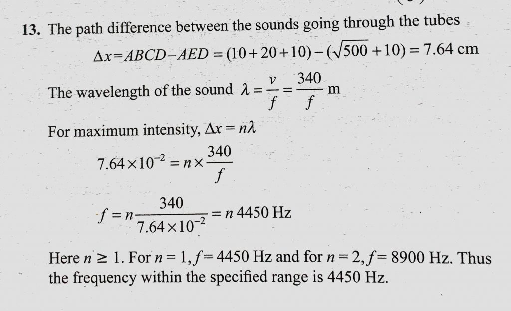 Figure shows a tube structure in which signal is sent from one end and is received at the other end. The frequency of the sound source can be varied electronically between 2000 and 5000 Hz. Figure shows a tube structure in which signal is sent from one end and is received at the other end. The frequency of the sound source can be varied electronically between 2000 and 5000 Hz. November 5, 2020 Category: Uncategorised (JEE Advanced Physics by BM Sharma + GMP Solutions) , Facebook Messenger WhatsApp Share this:TwitterFacebook Related